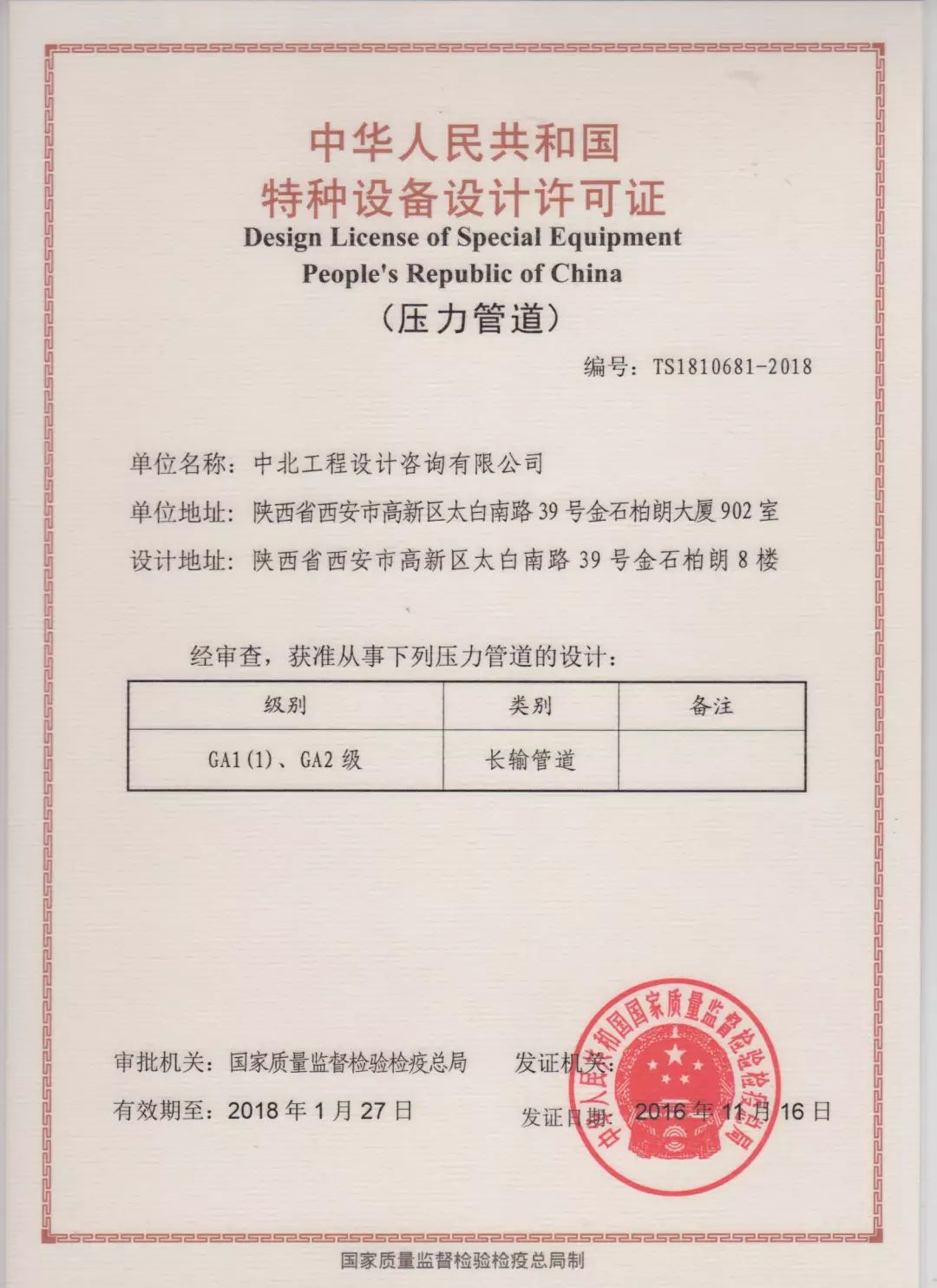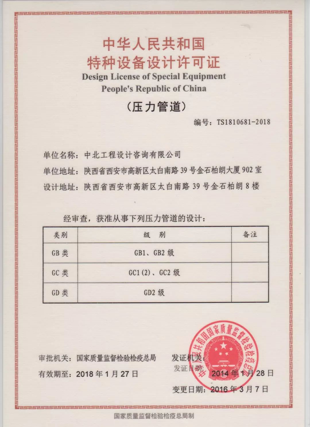特種裝備設(shè)計資質(zhì)證書