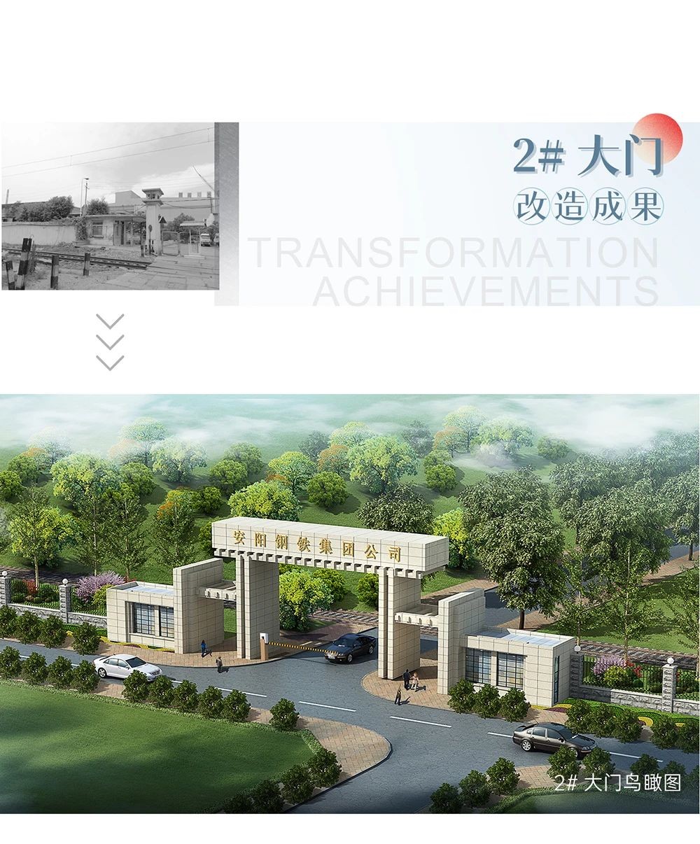 項目概況 :本項目參照標(biāo)志文化和企業(yè)特色,大門造型應(yīng)設(shè)計的穩(wěn)重,敦厚。這樣才能更好的與周圍的環(huán)境協(xié)調(diào)融合。 提取鋼板為設(shè)計元素,意在突出行業(yè)屬性,整個造型,既表現(xiàn)鋼的質(zhì)感,又傳達(dá)安鋼“鼎立中原”的內(nèi)涵。標(biāo)志簡潔、現(xiàn)代感強、外柔內(nèi)剛。 立面設(shè)計更多提取安鋼廠區(qū)工作中常見元素,如鋼鐵、機械元素。使大門更貼近工作環(huán)境并具有企業(yè)特色。給人一種親切感。