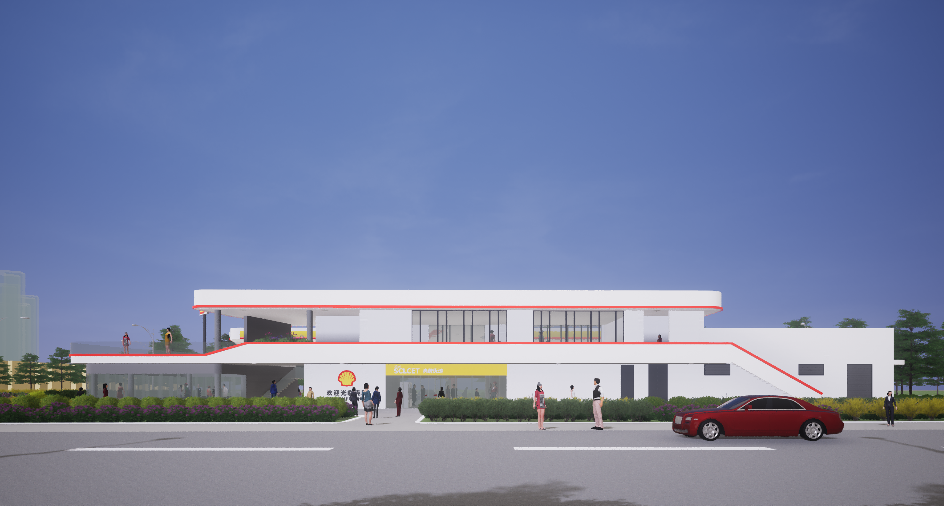 項目概況 :漳州開發(fā)區(qū)所在的區(qū)域有著美麗的沿海風(fēng)光,這里變化莫測的海岸沙灘及其天空流云,是本方案的靈感來源。 加油站的形體設(shè)計學(xué)習(xí)了海岸流云般的動態(tài)線條,整個建筑的立面設(shè)計強(qiáng)化水平感,從而營造出轉(zhuǎn)瞬即逝的現(xiàn)代感。這種建筑所帶來的感受與汽車的速度感相呼應(yīng),展現(xiàn)出加油站服務(wù)的高效率特征。 建筑結(jié)構(gòu)與表皮采用亮面的金屬,其對于外界的具有模糊倒影的效果,同樣加強(qiáng)了動態(tài)流云的意向。